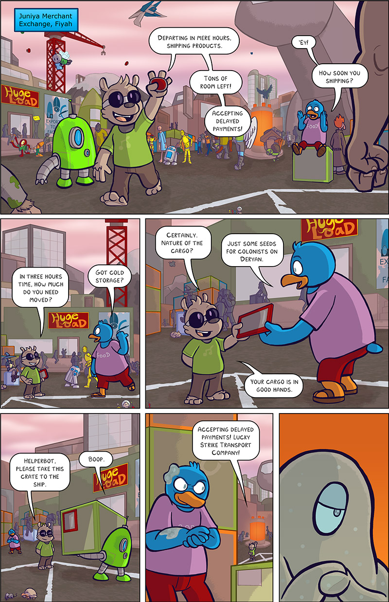 Helperbot rentals are quite common as spaceports, though most cargo companies end up purchasing one of their own. Unfortunately for the crew of the Lucky Strike, money is a little tight to own one of them.